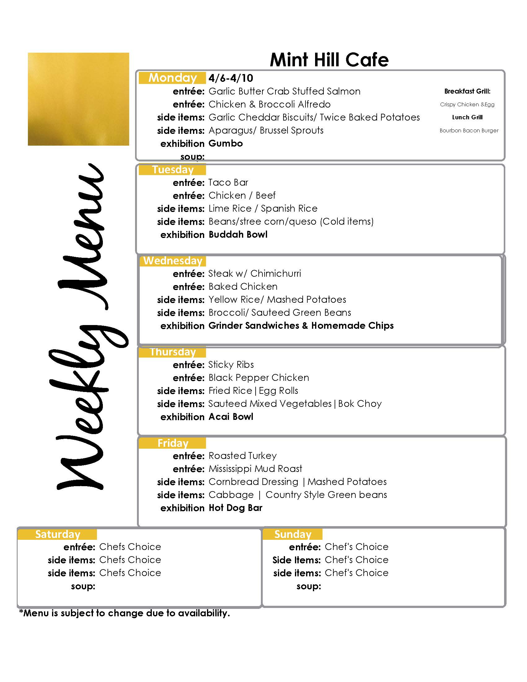 Cafe Menu